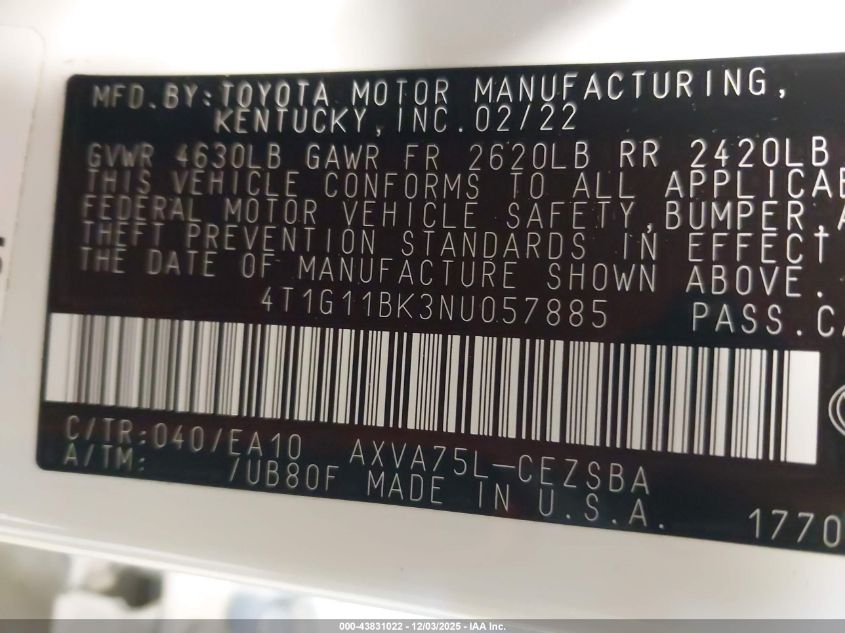2022 TOYOTA CAMRY 2022 року Бензин, 2.5, Полный привод, vin - 4T1G11BK3NU057885 из США