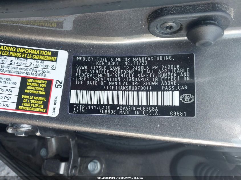 2024 TOYOTA CAMRY 2024 року Бензин, 2.5, Передний привод, vin - 4T1F11AK9RU879044 из США