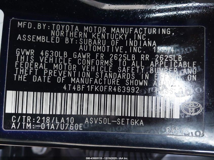 2015 TOYOTA CAMRY 2015 року Бензин, 2.5, Передний привод, vin - 4T4BF1FK0FR463992 из США