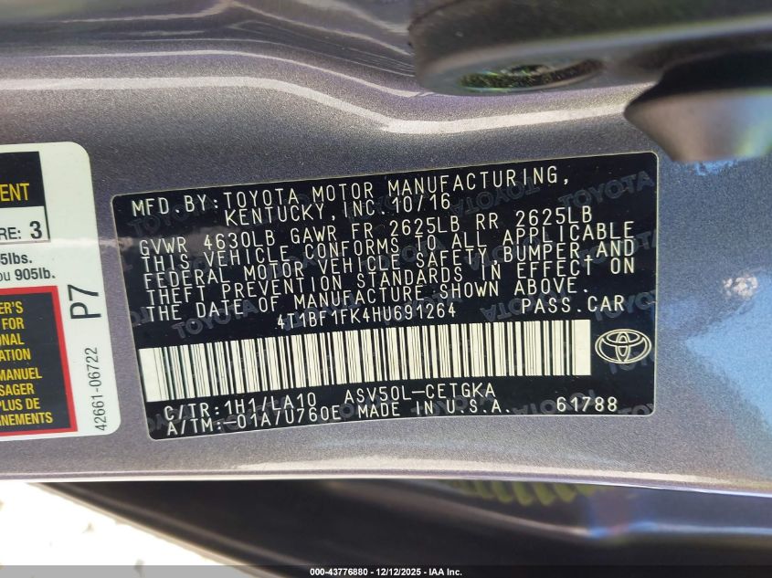 2017 TOYOTA CAMRY LE