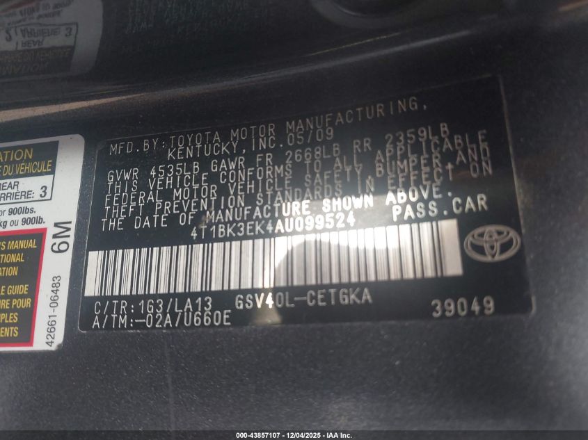 2010 TOYOTA CAMRY 2010 року Бензин, 3.5, Передний привод, vin - 4T1BK3EK4AU099524 из США