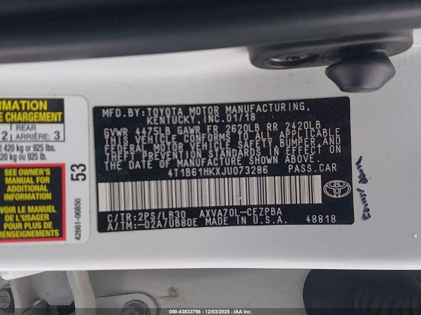 2018 TOYOTA CAMRY L