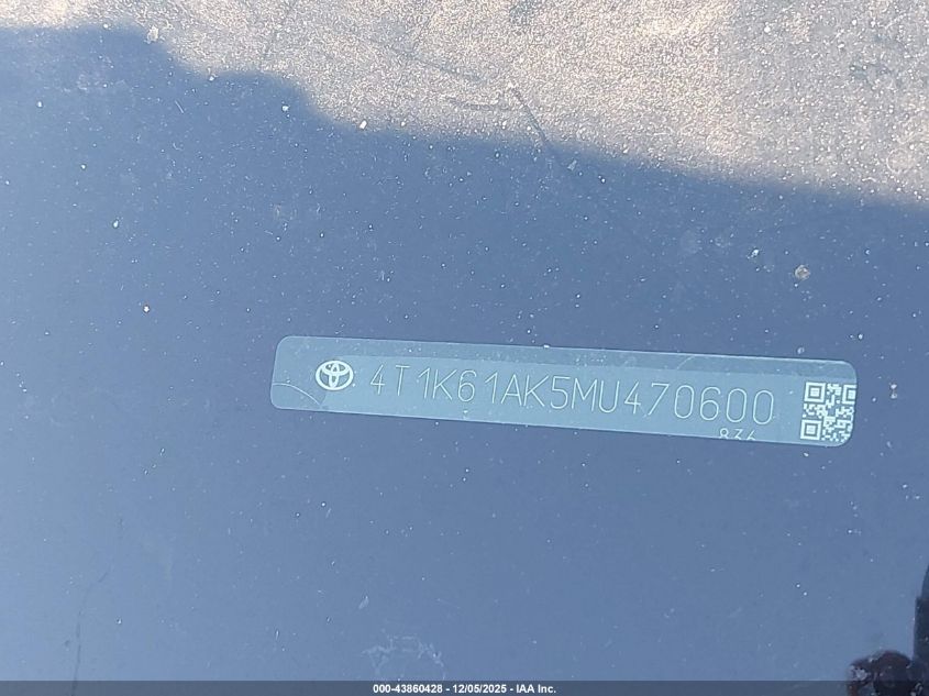 2021 TOYOTA CAMRY 2021 року Бензин, 2.5, Передний привод, vin - 4T1K61AK5MU470600 из США