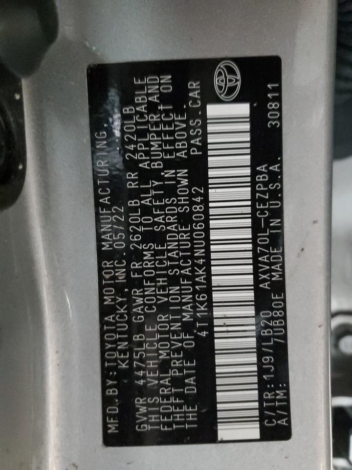 2022 TOYOTA CAMRY 2022 року Бензин, 2.5, , vin - 4T1K61AK4NU060842 из США