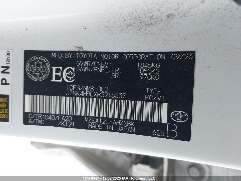2024 TOYOTA COROLLA 2024 року Бензин, , Передний привод, vin - JTNK4MBEXR3218337 из США