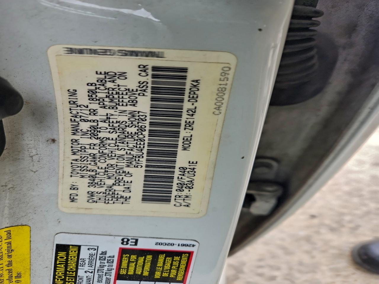 2012 TOYOTA COROLLA BASE