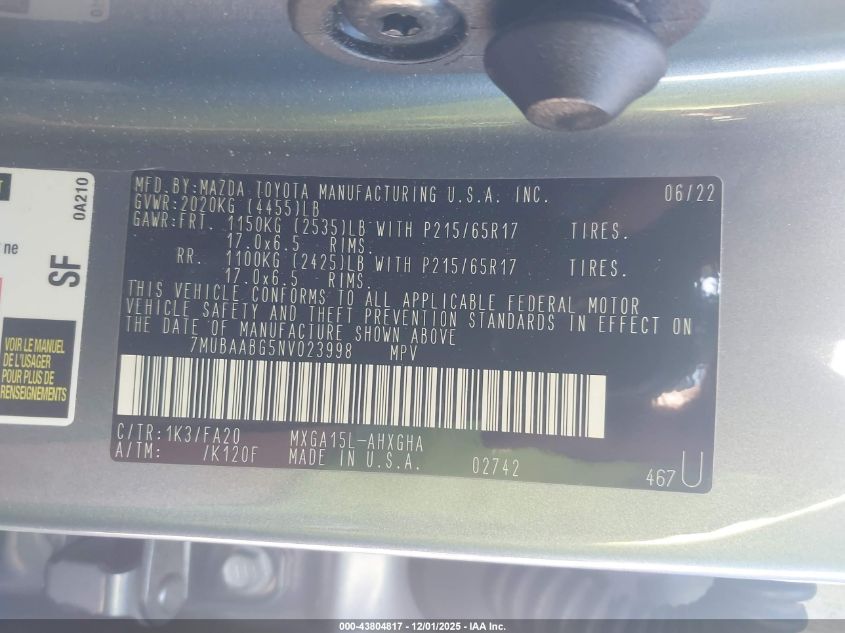 2022 TOYOTA COROLLA CROSS 2022 року Бензин, 2.0, Полный привод, vin - 7MUBAABG5NV023998 из США