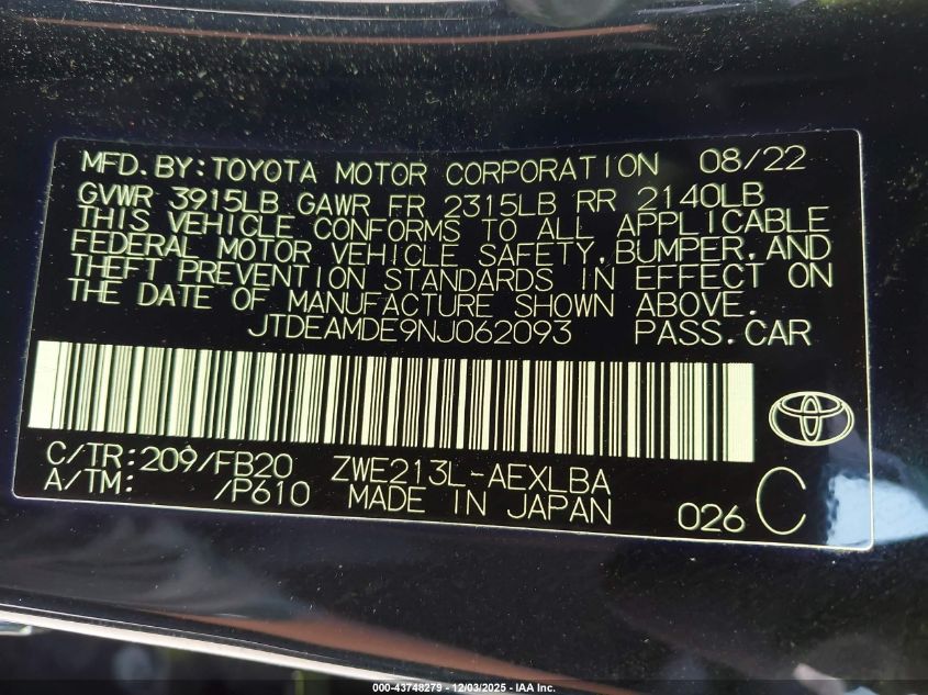 2022 TOYOTA COROLLA SE