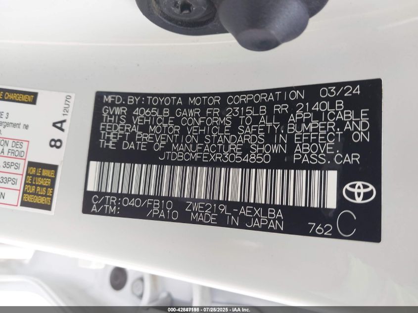 2024 TOYOTA COROLLA 2024 року Гибрид, 1.8, Передний привод, vin - JTDBCMFEXR3054850 из США