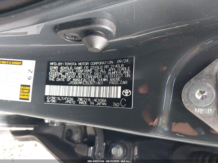 2025 TOYOTA COROLLA 2025 року Гибрид, 1.8, Передний привод, vin - JTDBCMFE3S3071401 из США