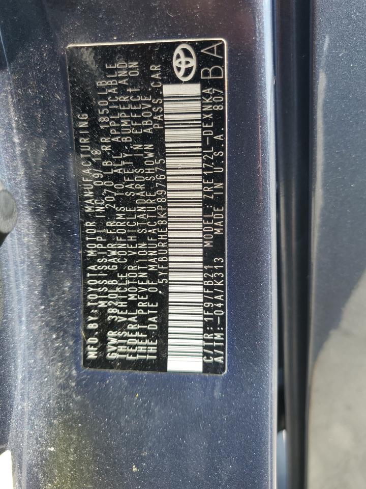 2019 TOYOTA COROLLA 2019 року Бензин, 1.8, , vin - 5YFBURHE8KP897675 из США