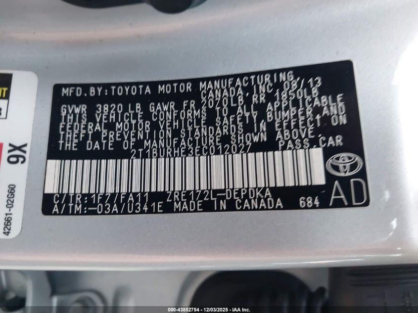 2014 TOYOTA COROLLA 2014 року Бензин, 1.8, Передний привод, vin - 2T1BURHE3EC012027 из США