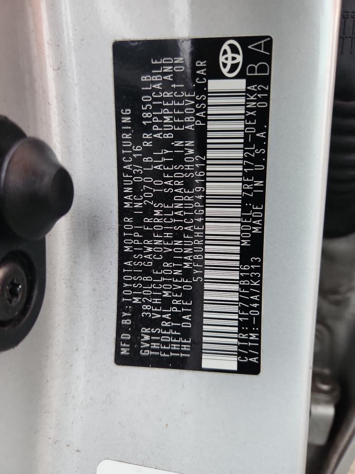 2016 TOYOTA COROLLA 2016 року Бензин, 1.8, , vin - 5YFBURHE4GP491612 из США