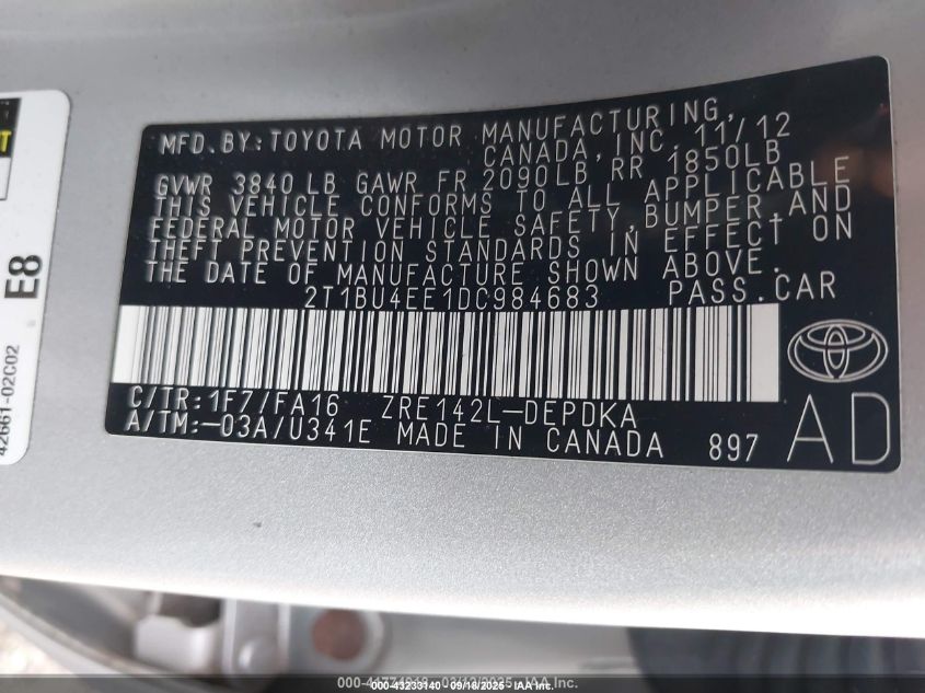 2013 TOYOTA COROLLA BASE