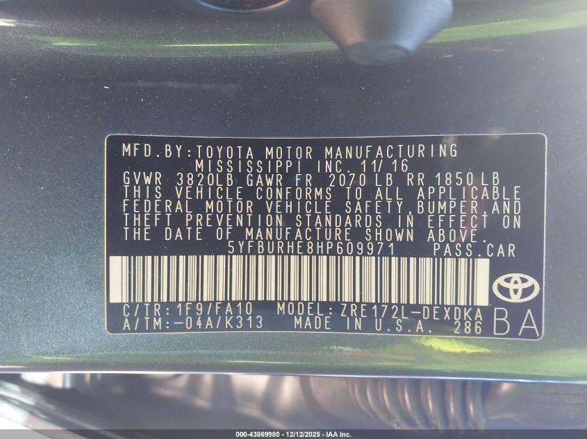 Цвет СерыйЦилиндры 4Привод Передний приводVIN 5YFBURHE8HP609971Состояние Заводится и едет (проверено)Повреждения Передняя или задняя AutoRIA