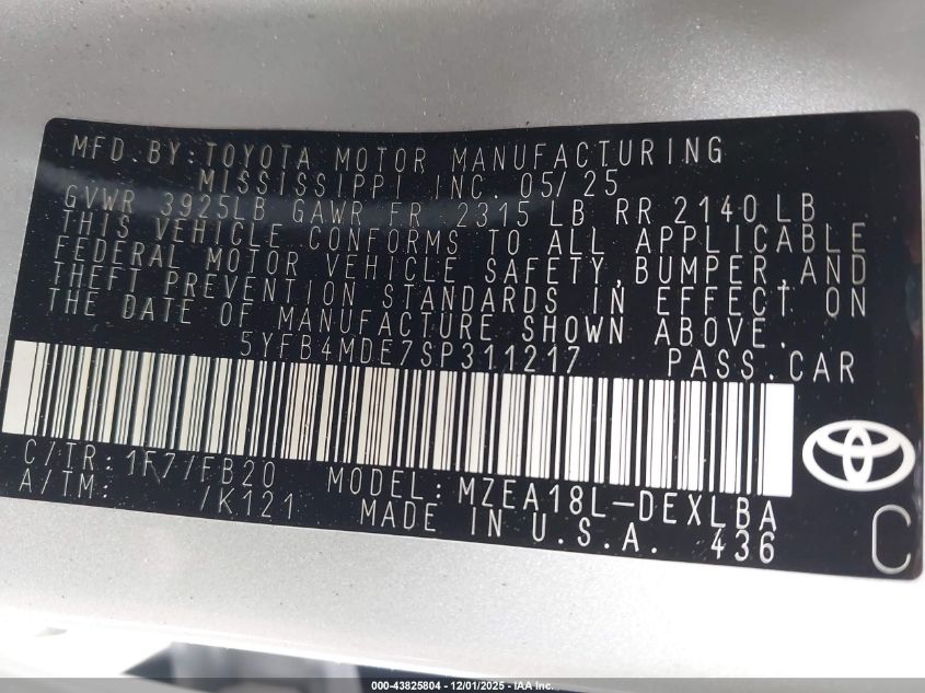 2025 TOYOTA COROLLA LE