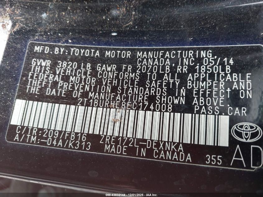 2014 TOYOTA COROLLA 2014 року Бензин, 1.8, Передний привод, vin - 2T1BURHE8EC174008 из США