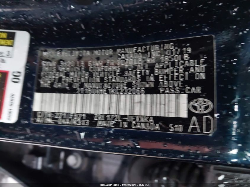 2019 TOYOTA COROLLA L