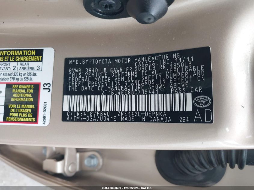 2011 TOYOTA COROLLA 2011 року Бензин, 1.8, Передний привод, vin - 2T1BU4EE8BC735441 из США