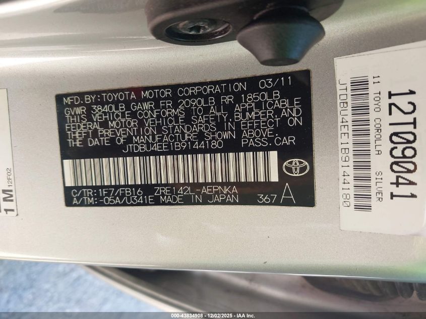 2011 TOYOTA COROLLA 2011 року Бензин, 1.8, Передний привод, vin - JTDBU4EE1B9144180 из США