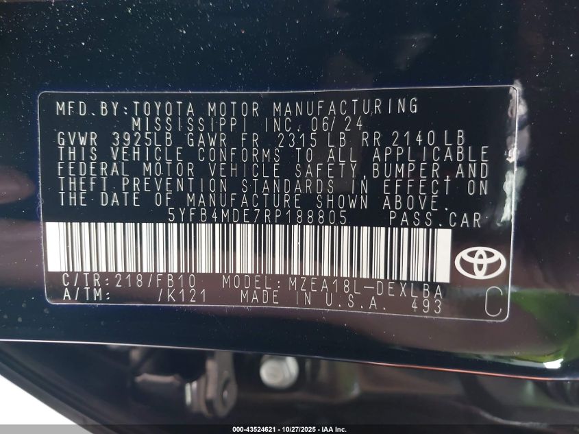 2024 TOYOTA COROLLA 2024 року Бензин, 2.0, Передний привод, vin - 5YFB4MDE7RP188805 из США