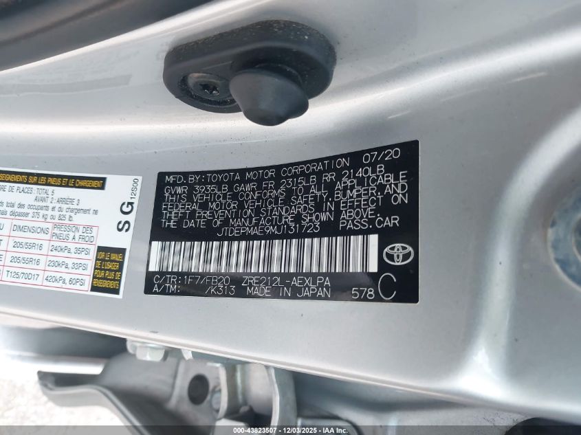 2021 TOYOTA COROLLA 2021 року Бензин, 1.8, Передний привод, vin - JTDEPMAE9MJ131723 из США