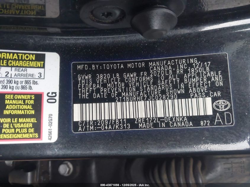 2018 TOYOTA COROLLA 2018 року Бензин, 1.8, Передний привод, vin - 2T1BURHE7JC028290 из США