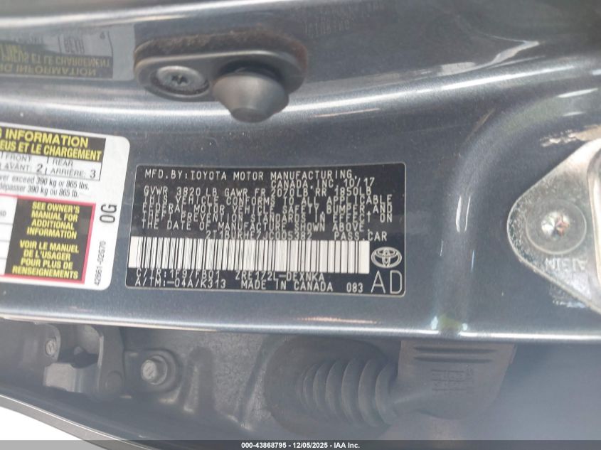 2018 TOYOTA COROLLA 2018 року Бензин, 1.8, Передний привод, vin - 2T1BURHE7JC005382 из США