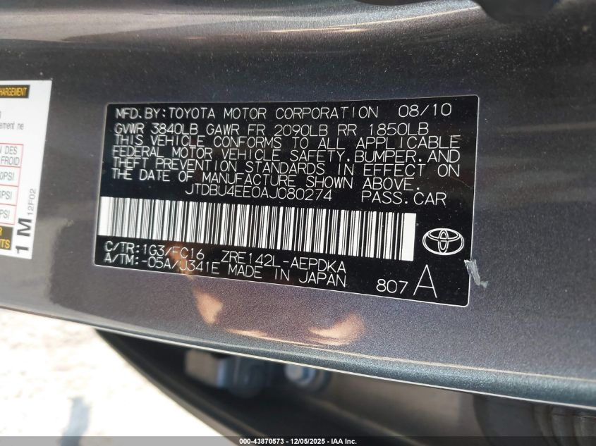Цвет БежевыйЦилиндры 4Привод Передний приводVIN JTDBU4EE0AJ080274Состояние Заводится и едет (проверено)Повреждения Передняя или задняя AutoRIA