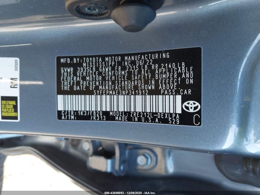 2022 TOYOTA COROLLA LE