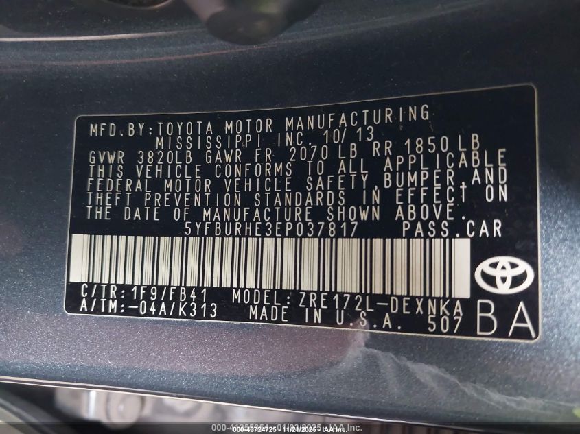 2014 TOYOTA COROLLA 2014 року Бензин, 1.8, Передний привод, vin - 5YFBURHE3EP037817 из США