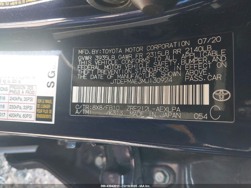 2021 TOYOTA COROLLA LE