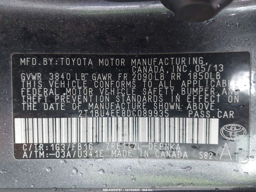 2013 TOYOTA COROLLA 2013 року Бензин, 1.8, Передний привод, vin - 2T1BU4EE8DC089935 из США