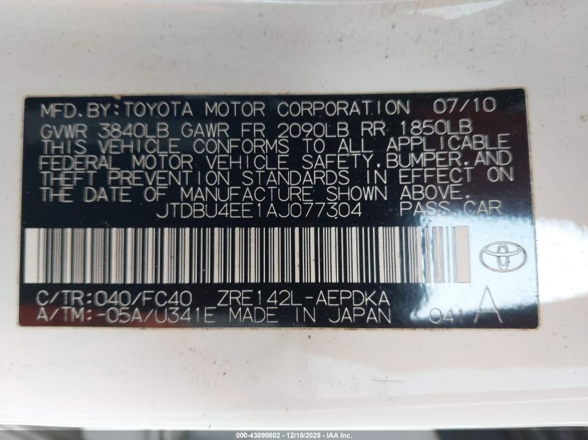 2010 TOYOTA COROLLA 2010 року Бензин, 1.8, Передний привод, vin - JTDBU4EE1AJ077304 из США