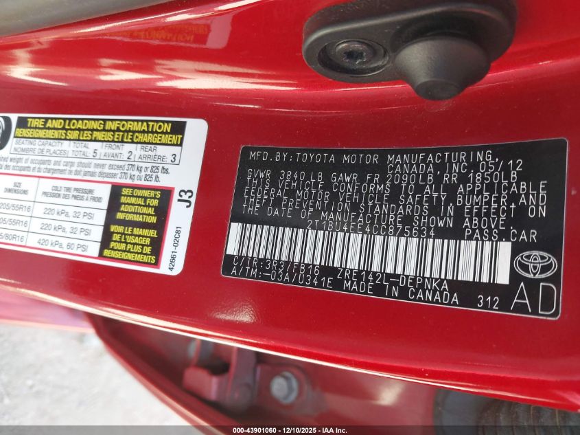 2012 TOYOTA COROLLA 2012 року Бензин, 1.8, Передний привод, vin - 2T1BU4EE4CC875634 из США