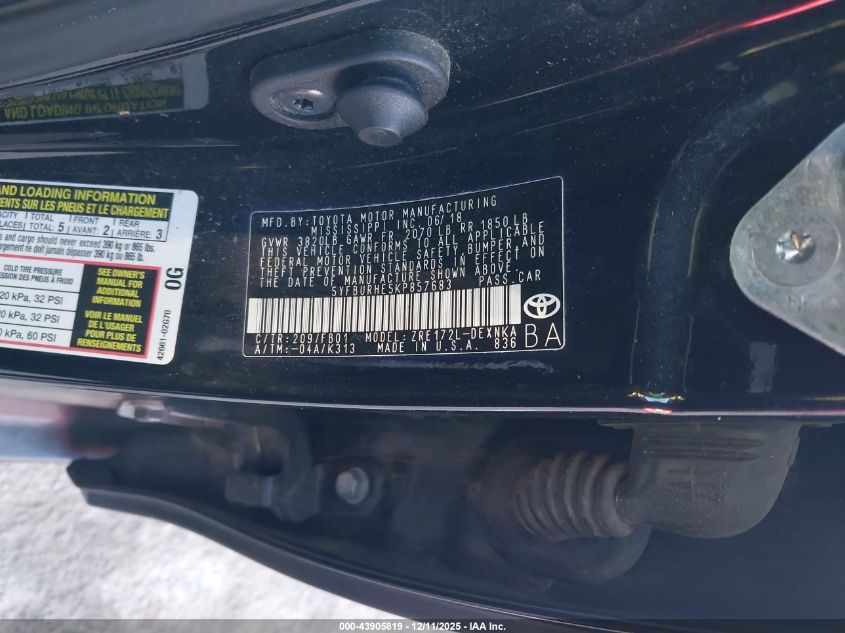 2019 TOYOTA COROLLA 2019 року Бензин, 1.8, Передний привод, vin - 5YFBURHE5KP857683 из США