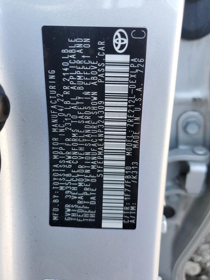 Цвет СеребряныйЦилиндры 4VIN 5YFEPMAE4NP324309Состояние Заводится и едет (проверено)Повреждения Передняя или задняя AutoRIA