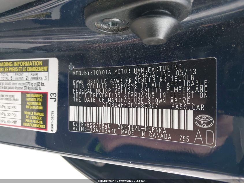 2013 TOYOTA COROLLA BASE