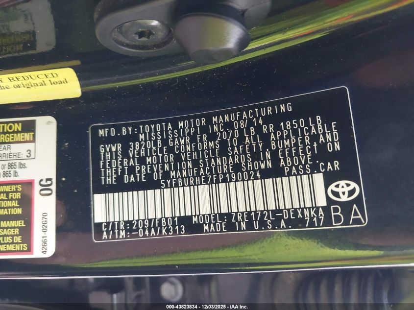 2015 TOYOTA COROLLA 2015 року Бензин, 1.8, Передний привод, vin - 5YFBURHE7FP190024 из США
