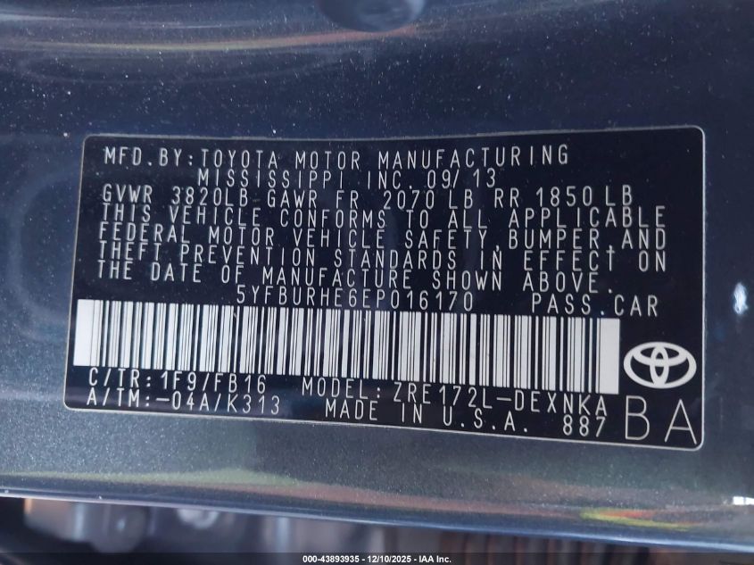 2014 TOYOTA COROLLA 2014 року Бензин, 1.8, Передний привод, vin - 5YFBURHE6EP016170 из США