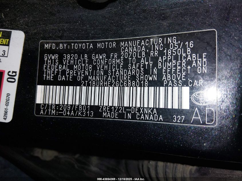 2016 TOYOTA COROLLA L