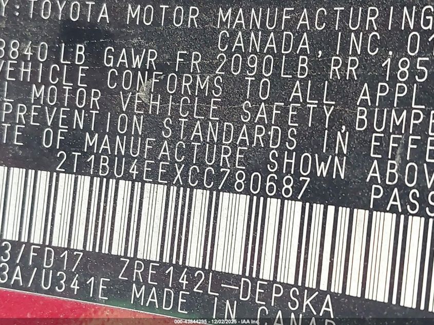 2012 TOYOTA COROLLA 2012 року Бензин, 1.8, Передний привод, vin - 2T1BU4EEXCC780687 из США