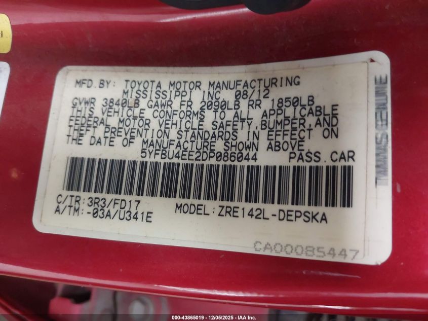 Цвет КрасныйЦилиндры 4Привод Передний приводVIN 5YFBU4EE2DP086044Состояние СтационарноПовреждения Передняя и задняя AutoRIA