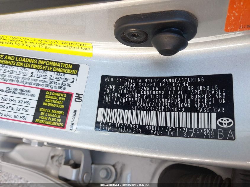 Цвет СеребряныйЦилиндры 4Привод Передний приводVIN 5YFBURHE7EP101079Состояние СтационарноПовреждения Передняя или задняяДата аукциона 2025-12-09 AutoRIA