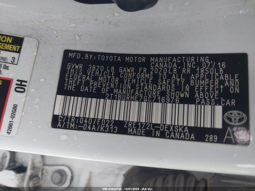 2016 TOYOTA COROLLA 2016 року Бензин, 1.8, Передний привод, vin - 2T1BURHE7GC716976 из США