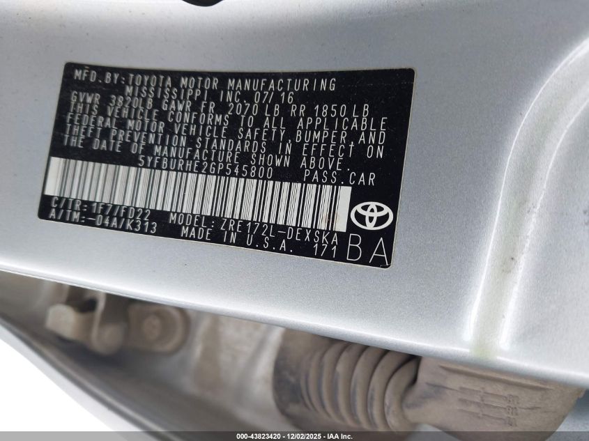 2016 TOYOTA COROLLA 2016 року Бензин, 1.8, Передний привод, vin - 5YFBURHE2GP545800 из США