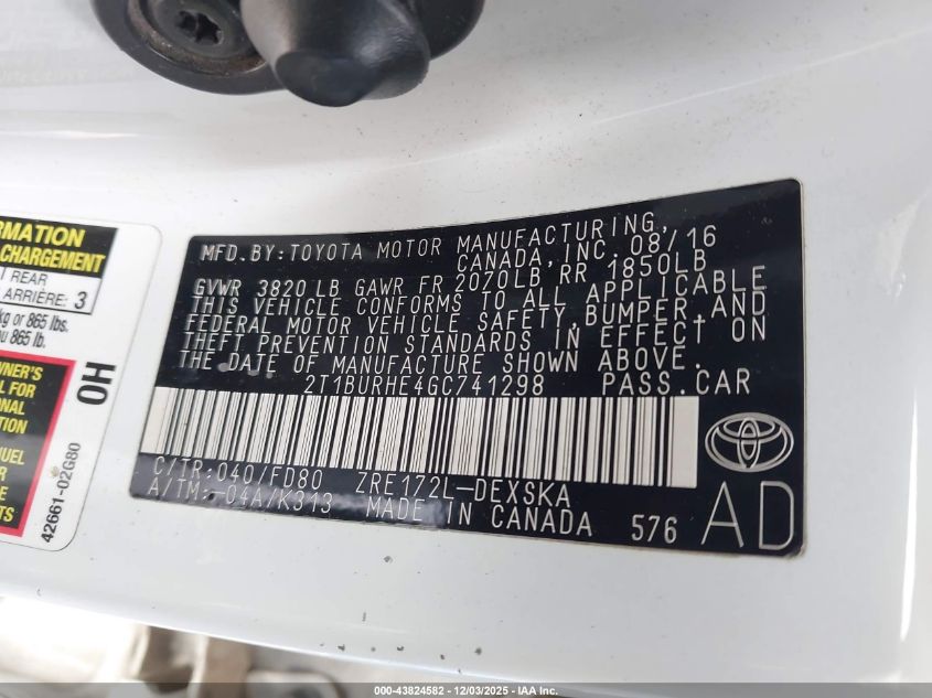 2016 TOYOTA COROLLA 2016 року Бензин, 1.8, Передний привод, vin - 2T1BURHE4GC741298 из США