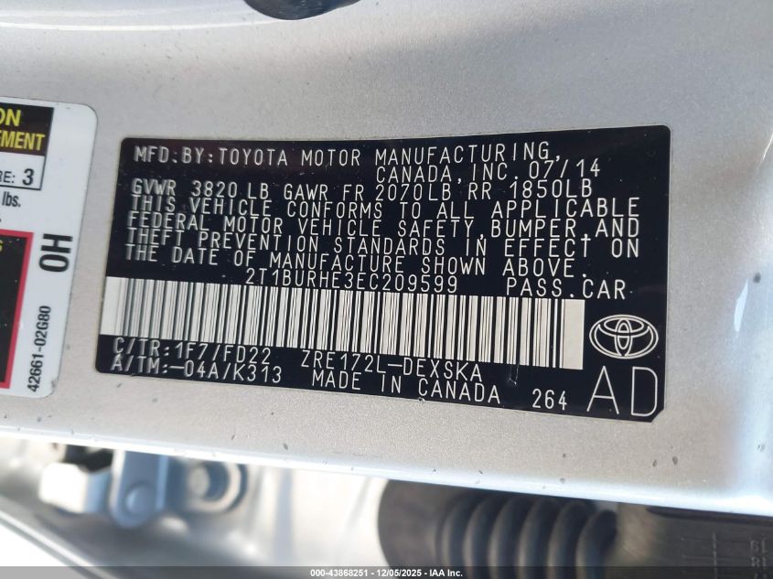 2014 TOYOTA COROLLA 2014 року Бензин, 1.8, Передний привод, vin - 2T1BURHE3EC209599 из США