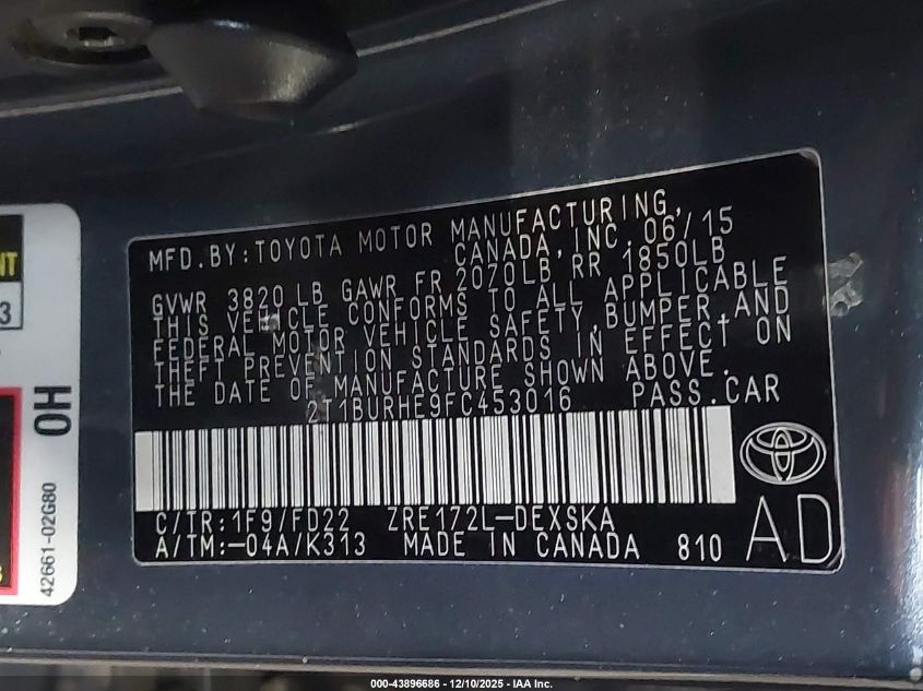 2015 TOYOTA COROLLA 2015 року Бензин, 1.8, Передний привод, vin - 2T1BURHE9FC453016 из США