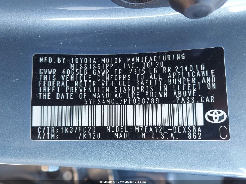 2021 TOYOTA COROLLA LE